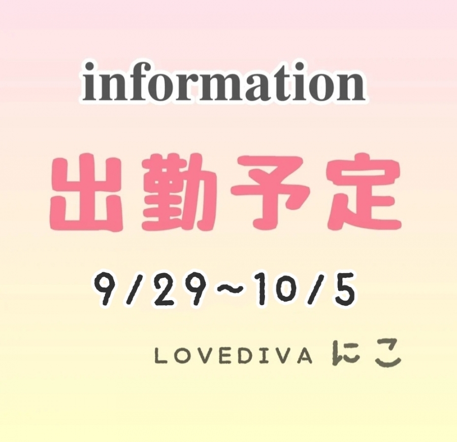 9/29~10/5までの、出勤予定となります。